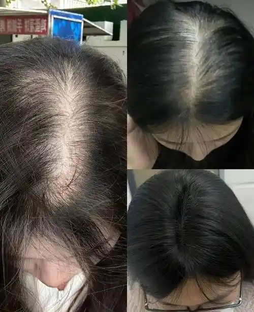 媒体记者李女士(32 岁,雄激素性脱发):连续使用 28 天,洗头时掉发从每次 80-100 根减少到 15-20 根,发缝明显变窄,新生绒毛清晰可见,发根变得非常稳固,拉扯实验中头发脱落数量减少84.2%;